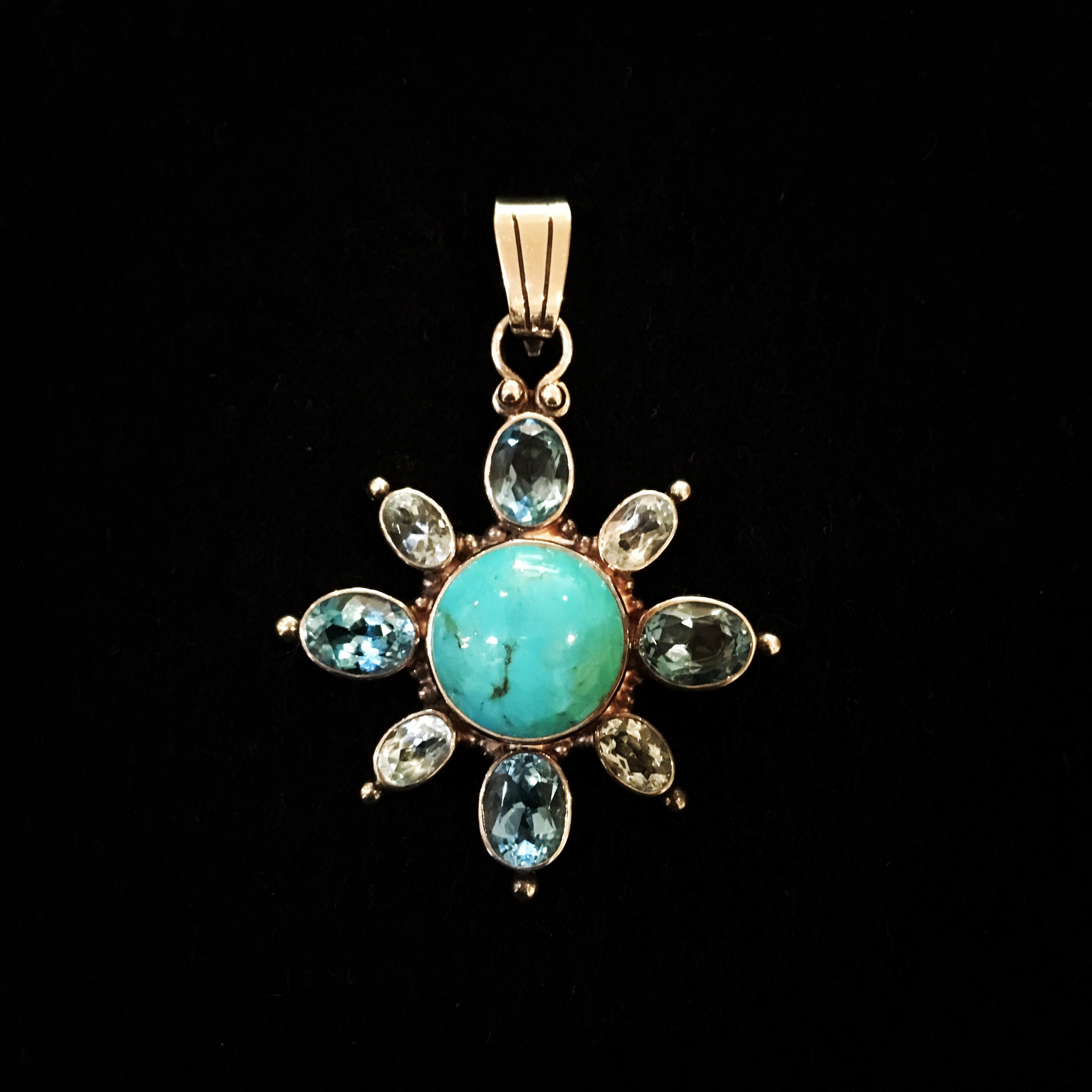 Turquoise & Blue Topaz Starburst Pendant SKU: L5216SPS3